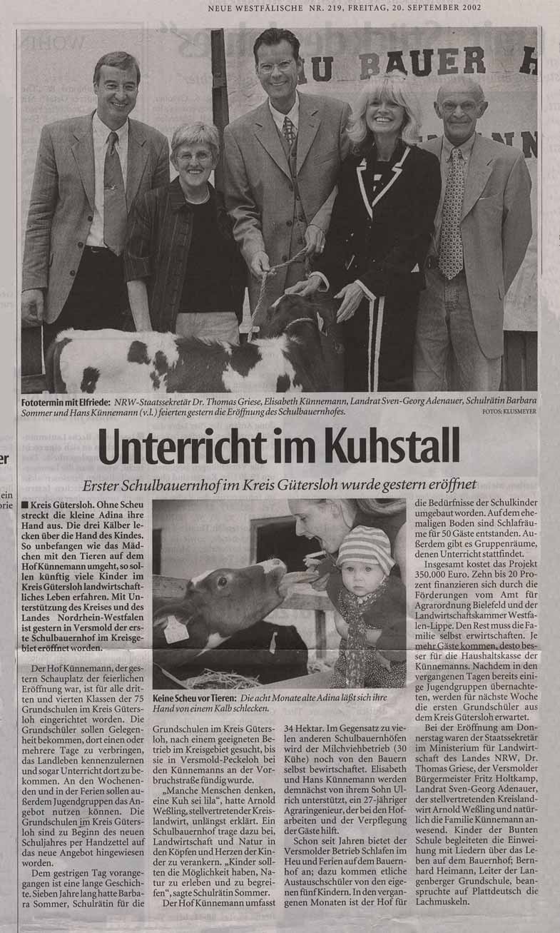aus: Neue Westfälische Nr. 219, Freitag 20. September 2002